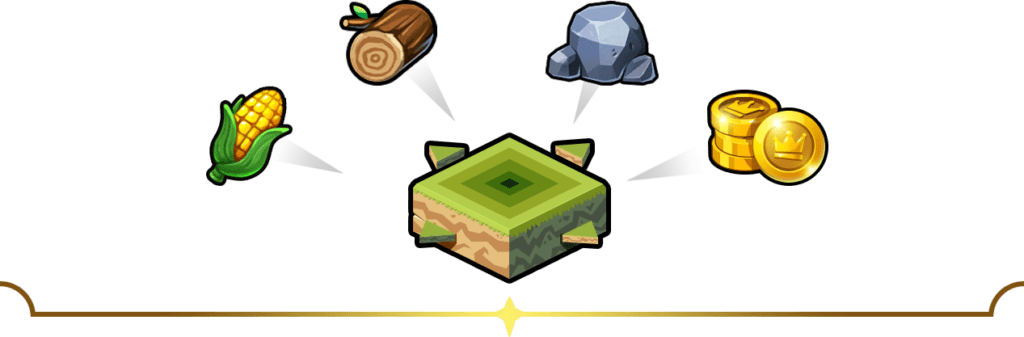 Trong League of Kingdoms, trước tiên bạn thu thập tài nguyên để xây dựng các mảnh đất và tòa nhà của mình.